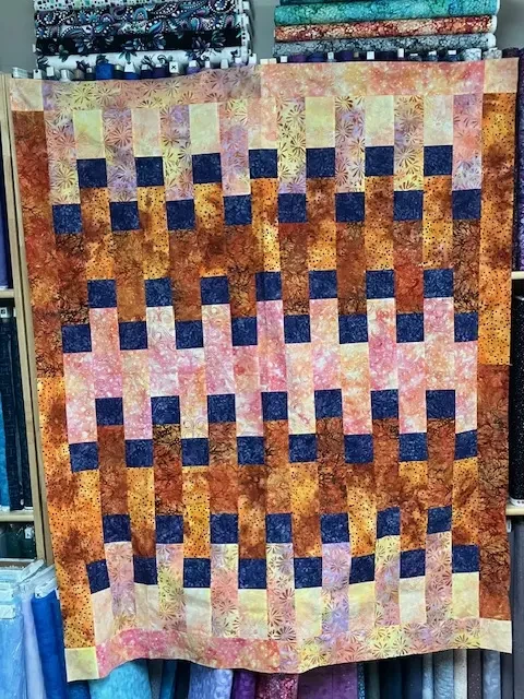 Uses three fabrics of a similar color, two fabrics of a contrasting color, and one fabric that contrasts with all of the other fabrics. This 6-pack pattern uses 6 half yards and was designed by Stitchin Tree.